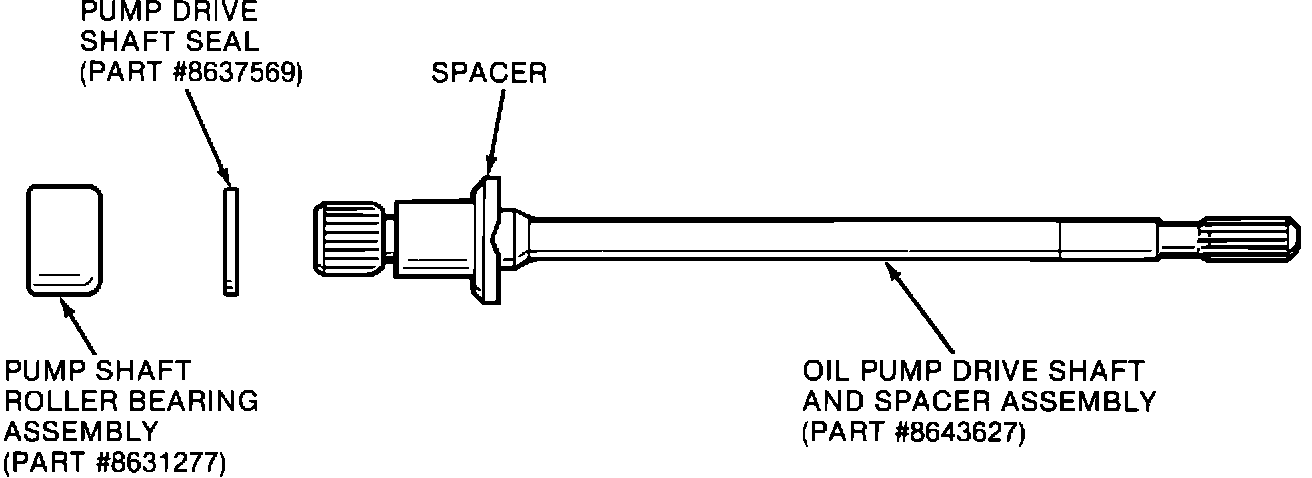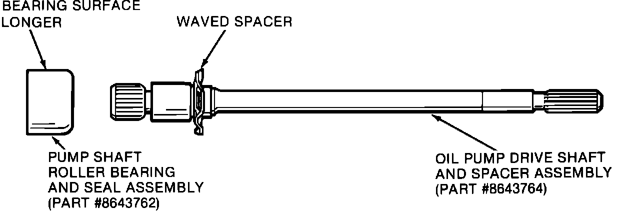FIGURE 1 - FORMER OIL PUMP DRIVE SHAFT AND SPACER ASSEMBLY: