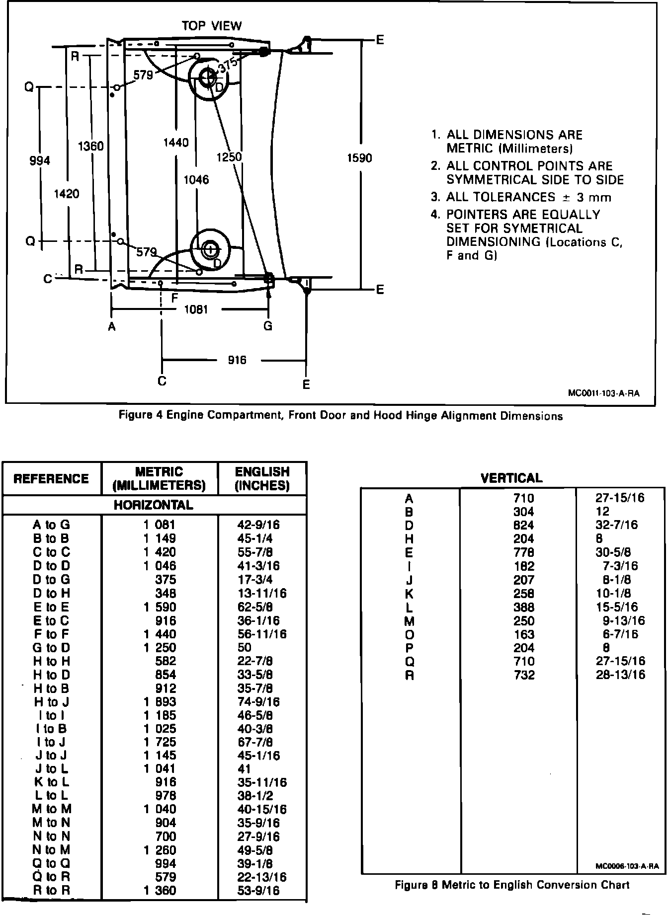Section 10-3 with these revised dimensions should be used for all prior model year Century cars replacing any information in prior manuals referring to the frame and underbody.