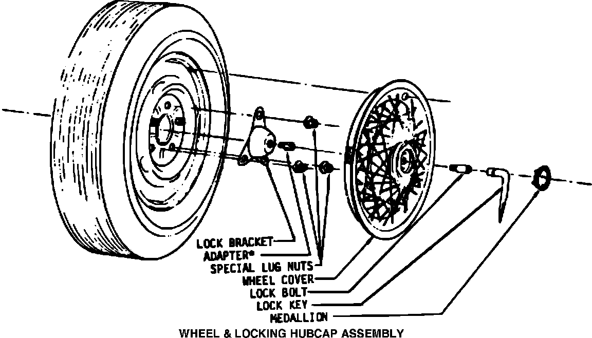In addition to individual components, a complete locking wire wheel package (Option N91) is available by Norris through WDDGM for the 1983 models. This package contains the following components. Four (4) locking wire wheel covers, four (4) medallions, four (4) lock brackets, four (4) lock bolts, four (4) valve extensions, (12) lug nuts, one (1) key wrench, one (1) Registration Card and Installation Instructions. Listed on the next page are the part numbers for this package.