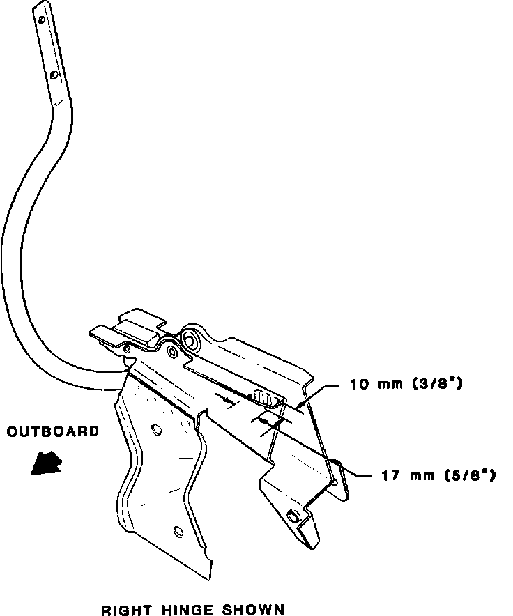 If a new service hinge is required on a Century with optional rear seat shoulder belts, it may be necessary to cut notches in the outboard flanges of the service hinge assembly as shown in the illustration.