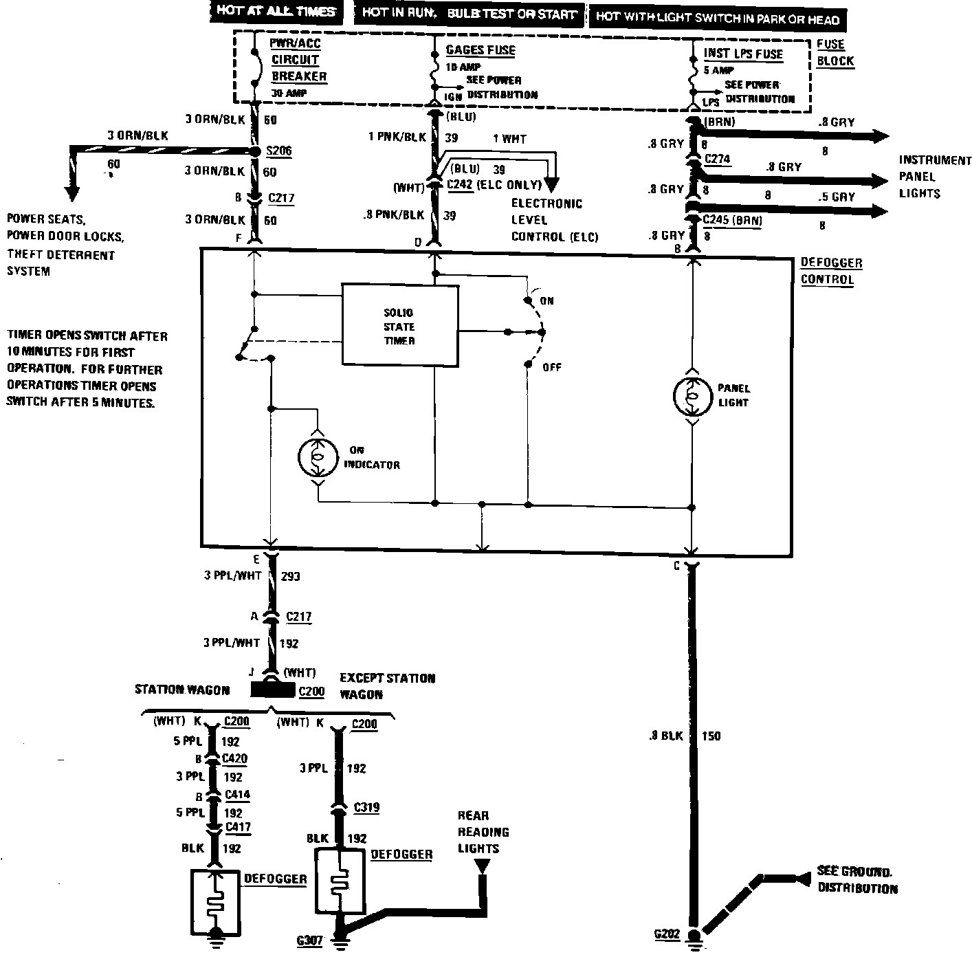 Rear Window Defogger Wiring Circuit: