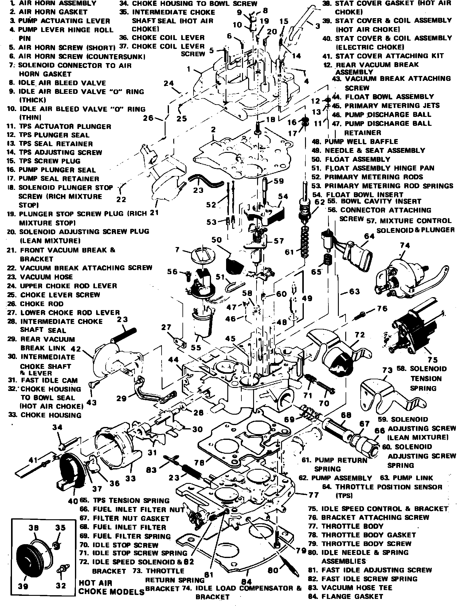 Fig. 3 Typical exploded view of Rochester model E2M series carburetor:
