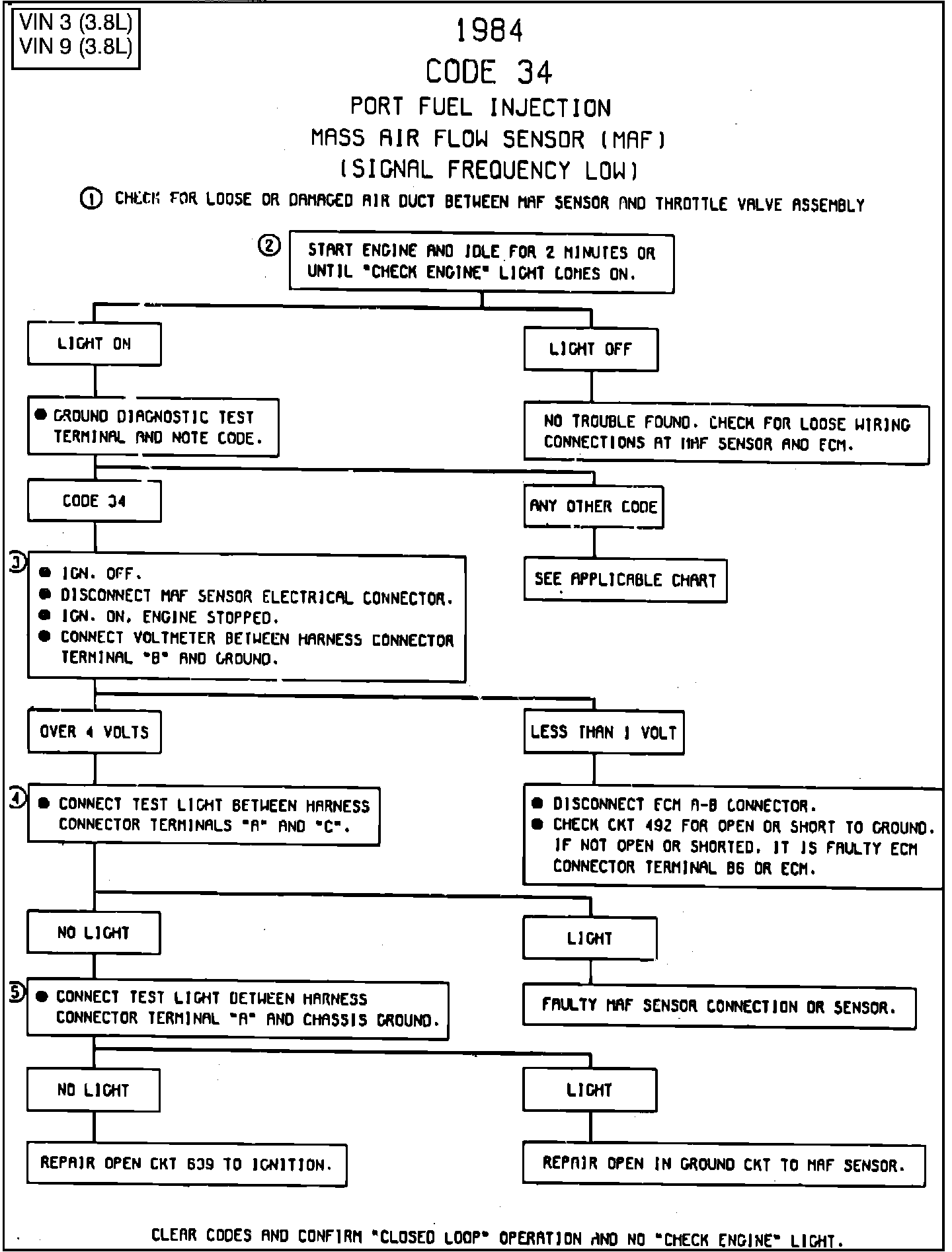 1. A loose or damaged air duct can set code 34.