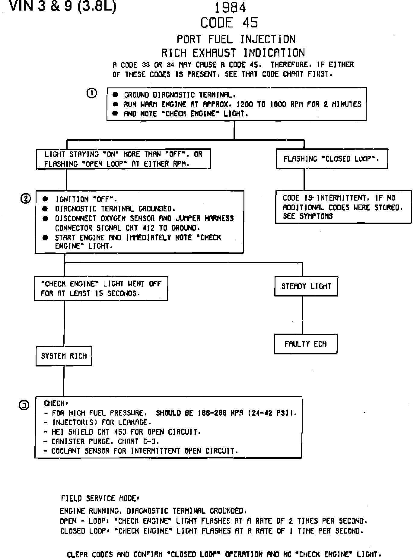 3. A Code 45 will not be caused by a faulty O2 sensor. Code 45 indicates a rich exhaust and diagnosis should begin with the items listed.
