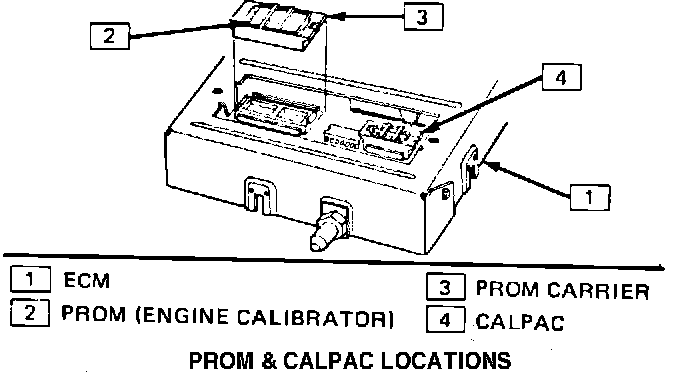 The all new ECM used on 3.8L, Buick MFI and SFI engines uses a plug in Prom and Calpac. In appearance the Prom, is basically the same that has been used on CCC and EFI vehicles in the past. The second plug-in module used in this ECM is called a Calpac and is smaller than the Prom. The Calpac is programmed to take over basic fuel and spark control functions in the event of an ECM or Prom failure. Stated simply it allows continued engine operation in the back-up mode.