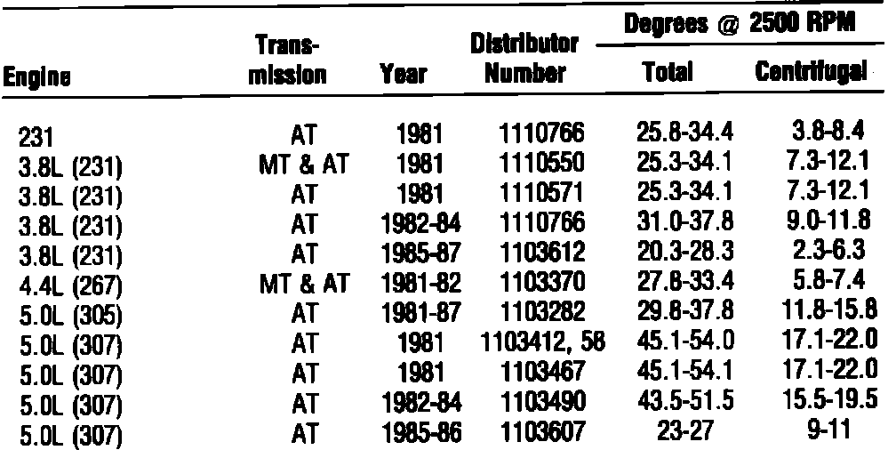 DISTRIBUTOR TIMING ADVANCE: