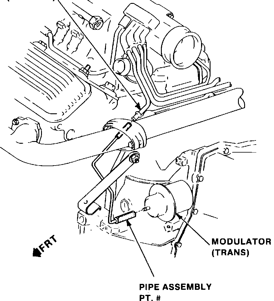 In mid January the aspirator/solenoid was eliminated and replaced with a solid steel line to supply vacuum to the modulator. See illustration. If a condition of inadequate vacuum supply to the modulator exists or if the aspirator solenoid should fail or you are experiencing second gear starts or excessively firm shifts, it is recommended that a solid steel line minus the aspirator be installed as shown in the illustration.