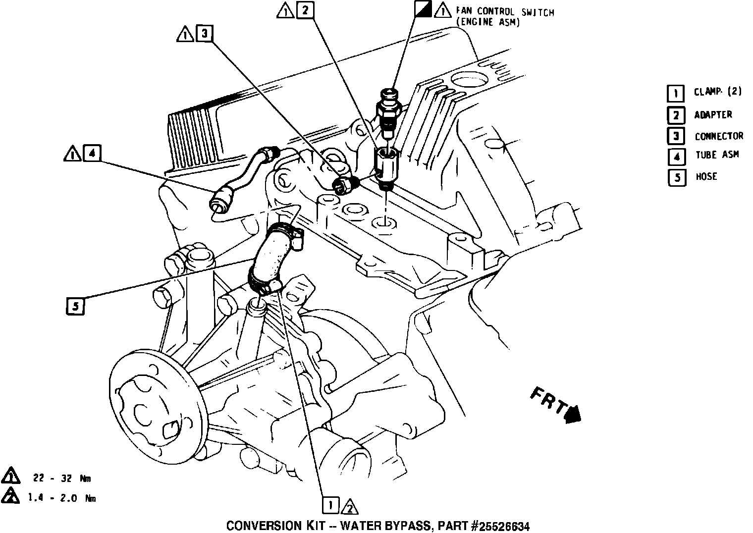 A new service kit to revise 3.8L MFI engines built prior to December, 1984 is now available. This additional bypass supplements that already provided through the heater. This kit must be used in conjunction with the new style water pump and gasket in kit part number 25525147 and three (3) tablets (tabs) of 3634621* (6 tabs per package) cooling system supplement or a locally available equivalent such as "Bars Leak". The bypass kit part number 25526634 contains an adapter, connector, pipe assembly, hose, clamps (2), instruction sheet, 195~ thermostat, and thermostat gasket.