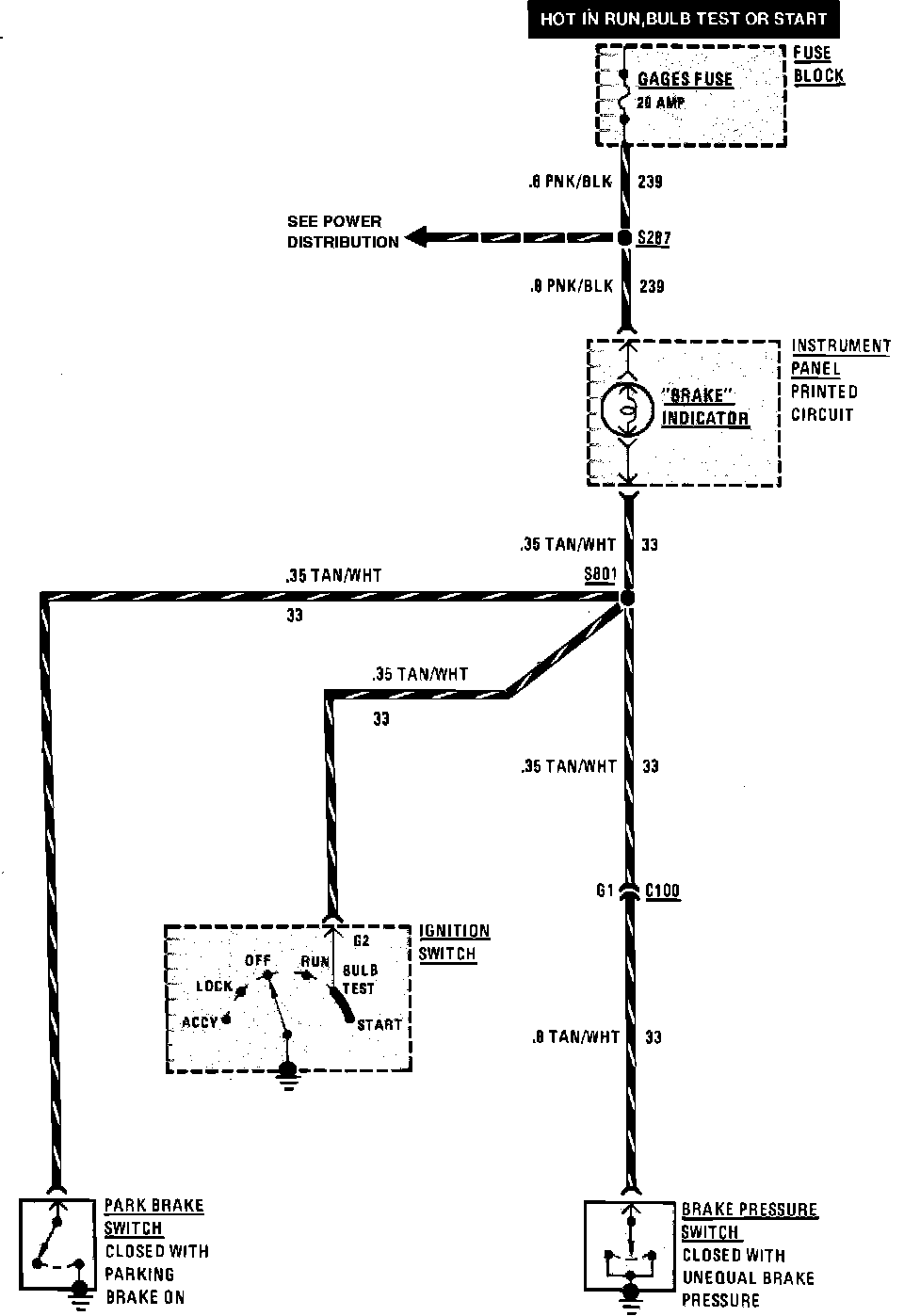 Brake Warning System & Indicators Wiring Circuit:
