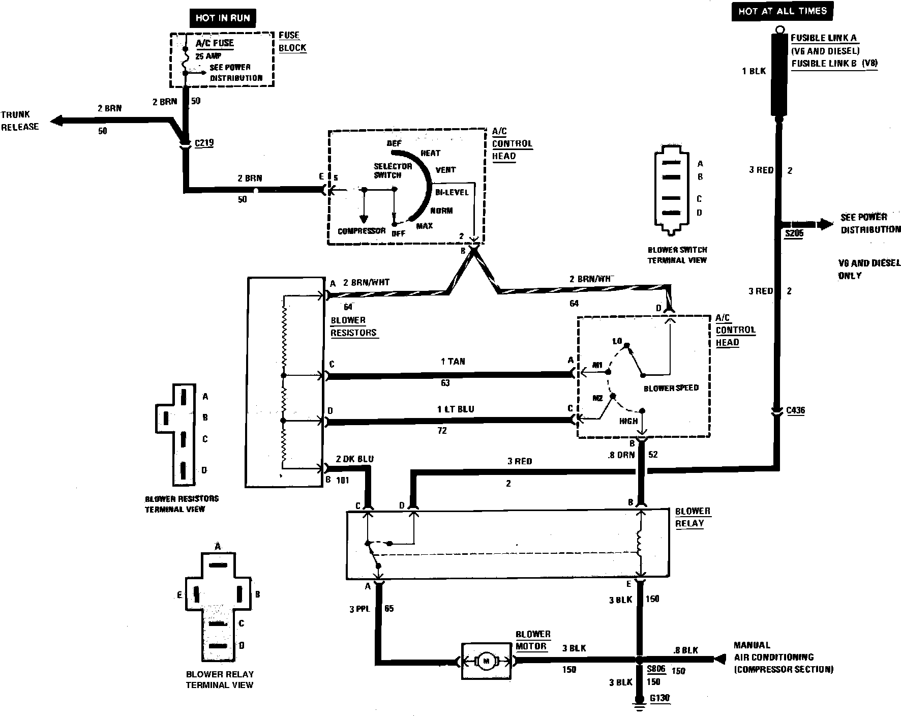 Air Conditioning (Blower Controls) Wiring Circuit W/Manual A/C: