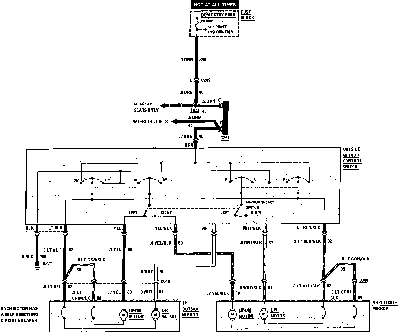 Power Remote Mirror Wiring Circuit, W/One Switch: