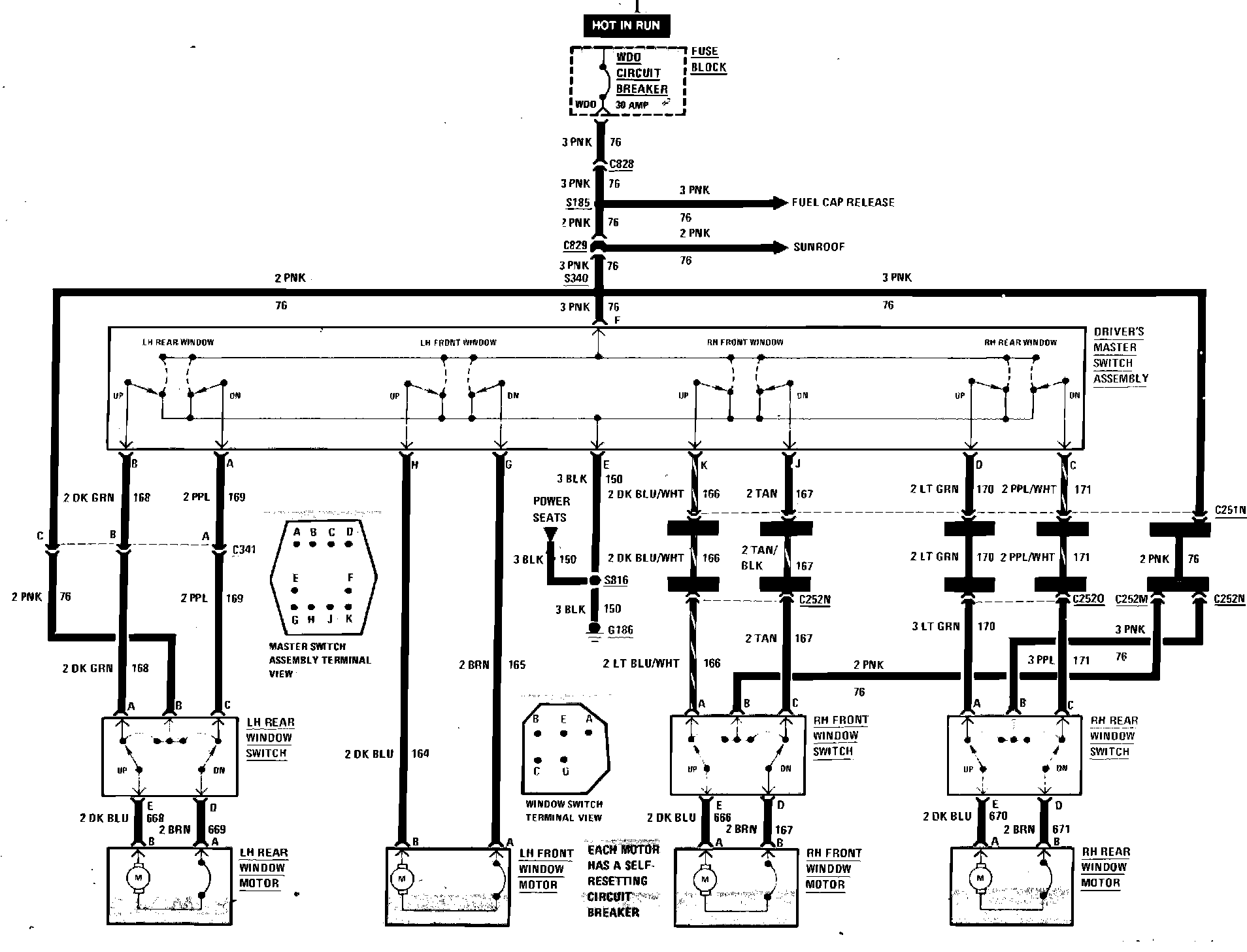 Power Windows Wiring Circuit, Four Door: