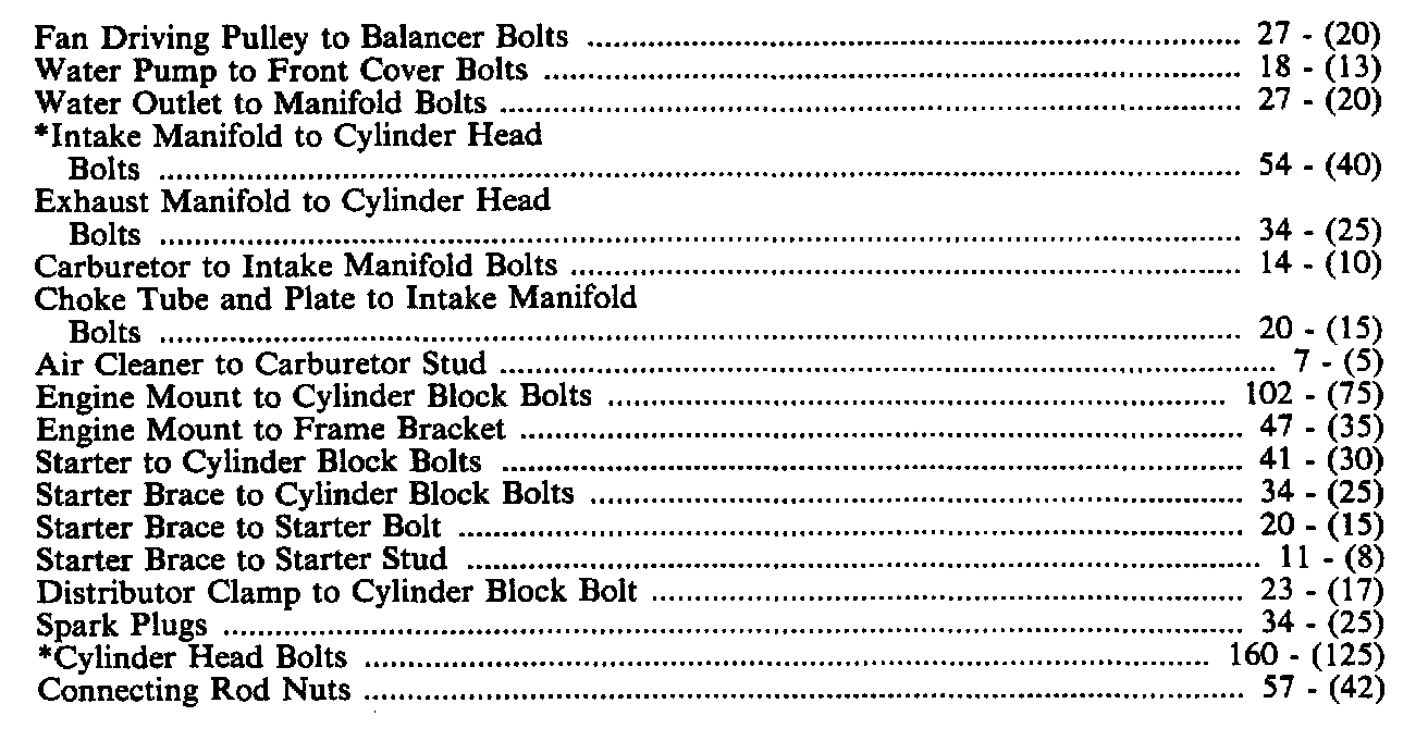 Torque Specifications Continued: