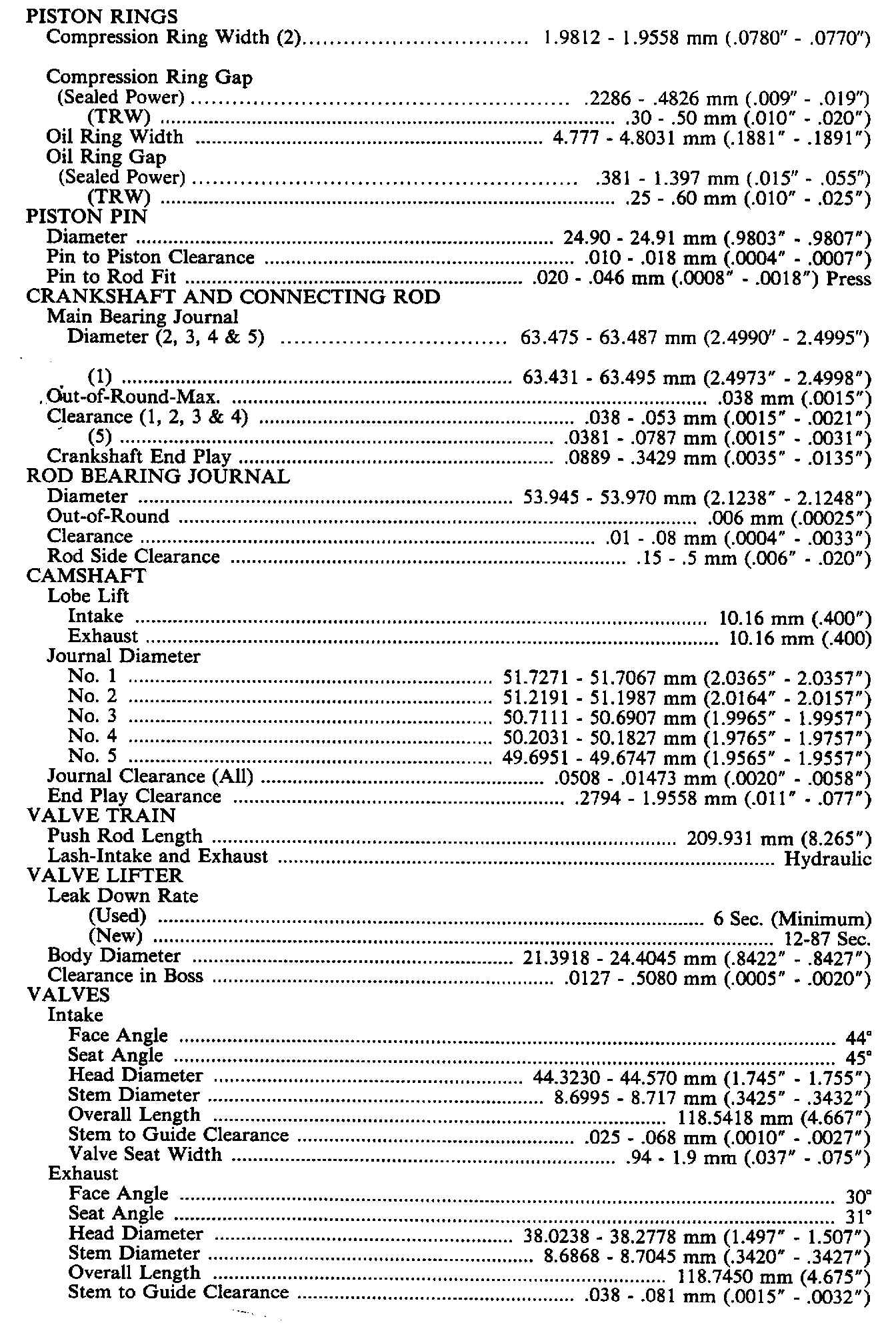 Engine Specifications: