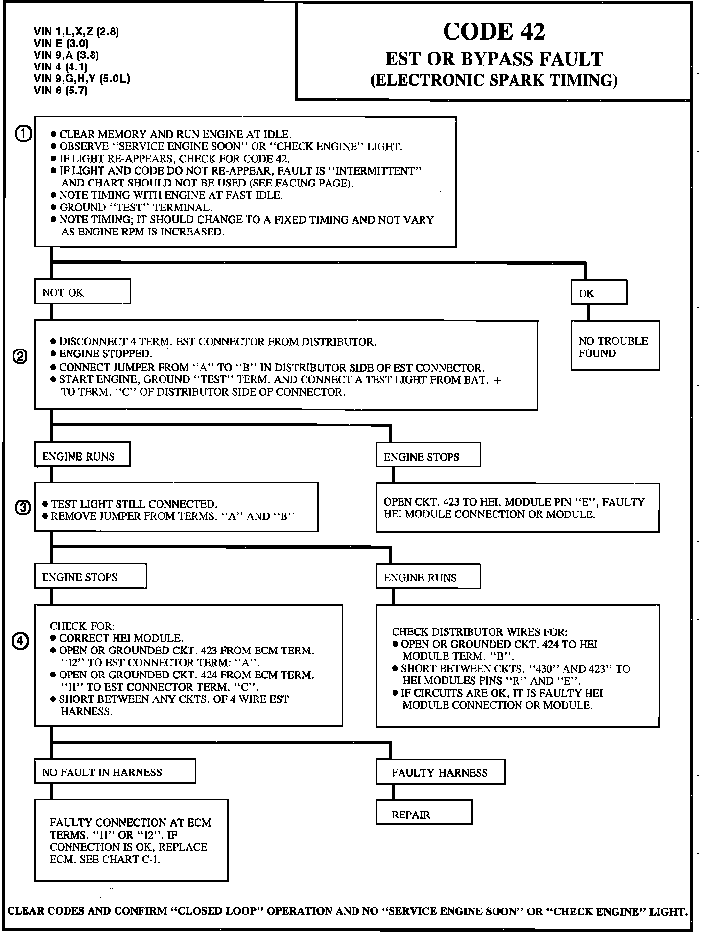 4. Since the engine ran when the module was jumpered, it says the problem is not in the distributor (if the correct HEI module is installed). The wrong HEI module can set a Code 42.