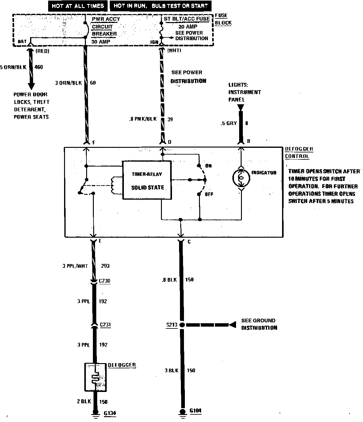Rear Window Defogger Wiring Circuit: