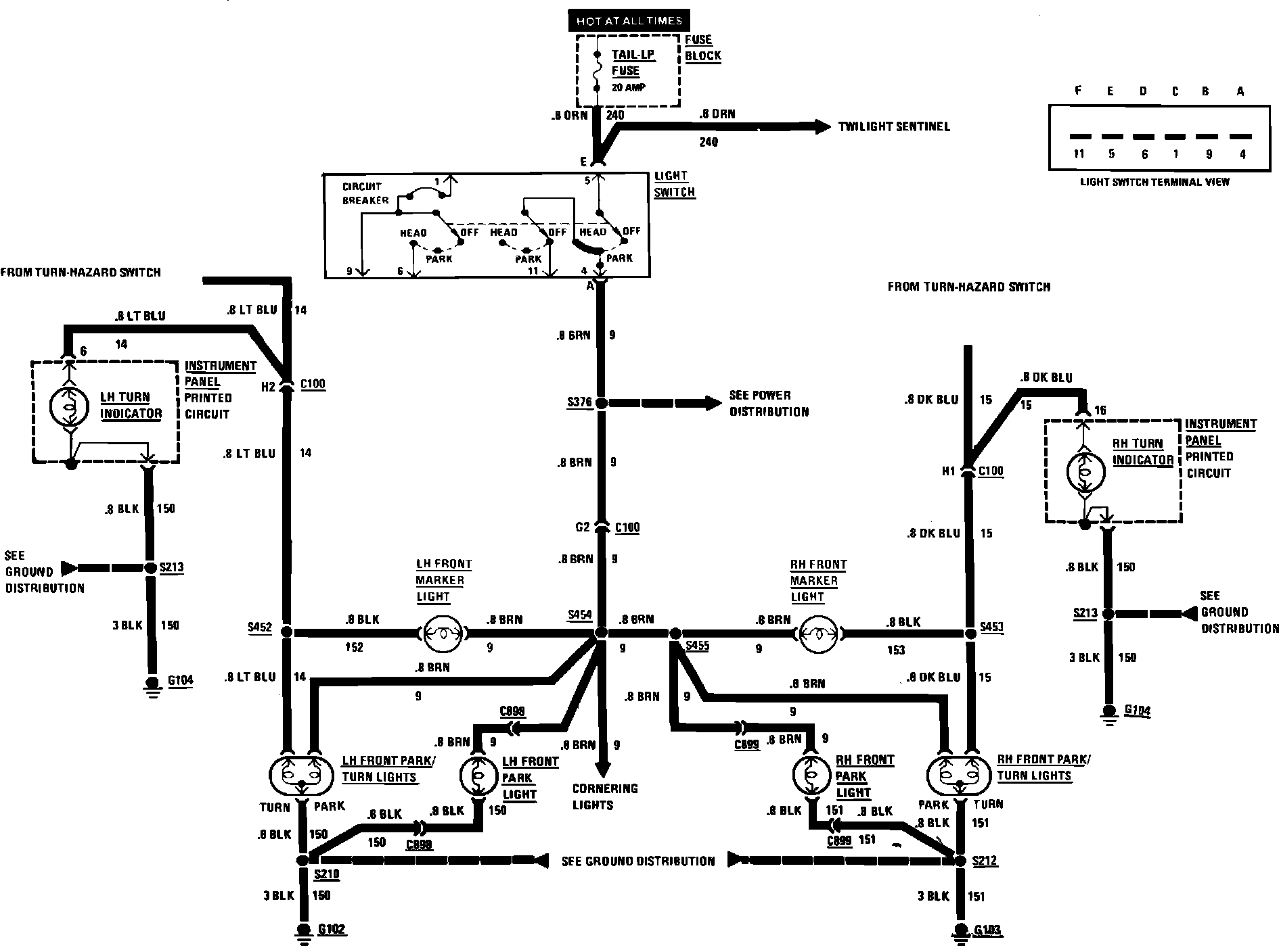 Front Marker, Front Park, Hazard, Stop & Turn Signal Wiring Circuit: