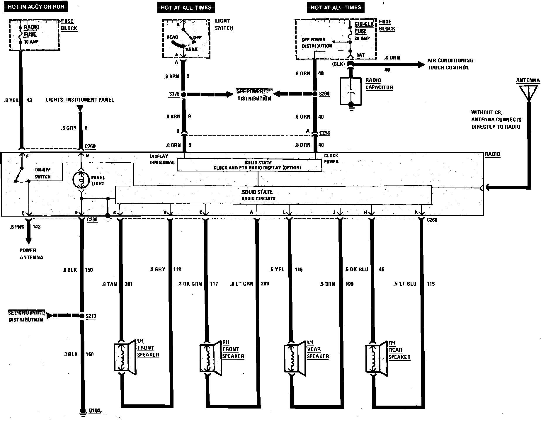 Fig. 437 Radio & Speaker Wiring Circuit (Stereo W/Electronic Tuning). 1984 Regal: