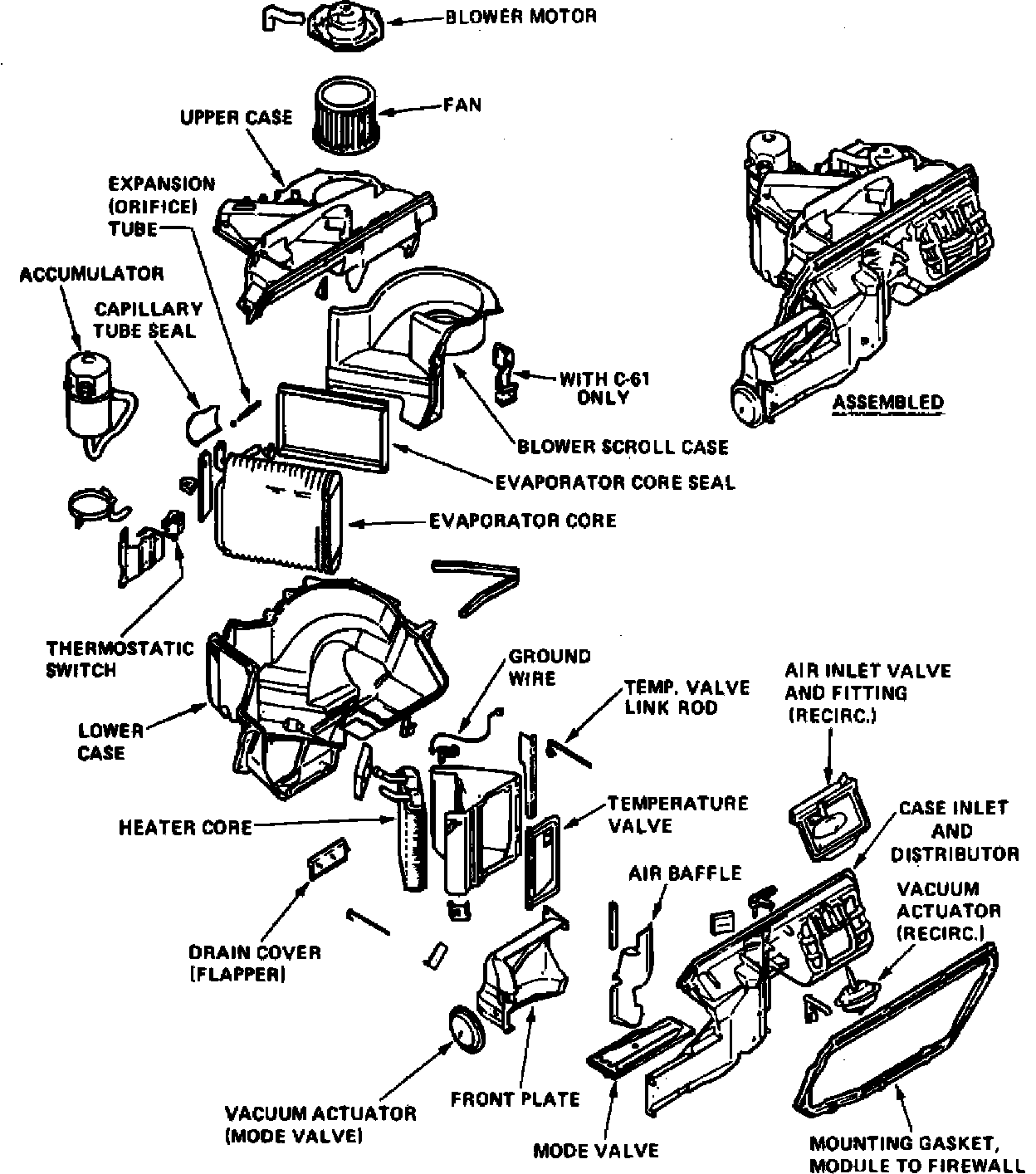 Fig. 14 Heater module assembly exploded view. 1982---87 Regal with A/C:
