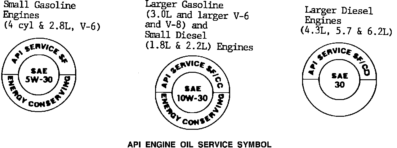 A new API service symbol is being used in GM owner's manuals and an oil cans. Urge your customers to look for it in their manuals and on the containers of the oil they select for use in their cars. These are examples of the symbol: