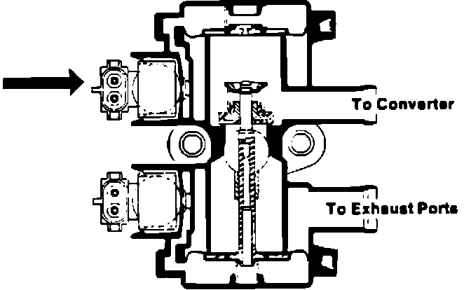 A popping noise may be emitted from the (PEDES) A.I.R. management valve. This noise may occur due to one of two possible causes, it may be caused by a missing solenoid plug on the black converter solenoid, see figure (1).