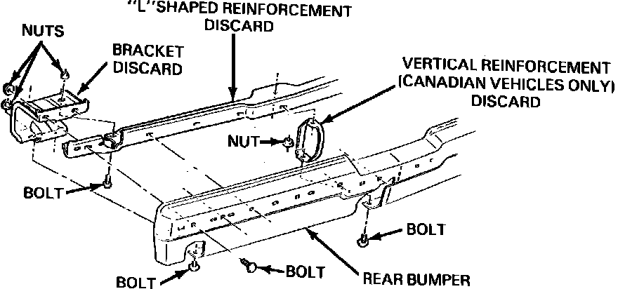 4. Remove mounting plates from bumper brackets. Discard brackets and "L"-shaped reinforcement.