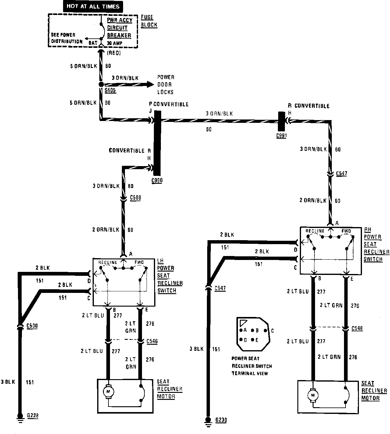 Power Seat Recliners Wiring Circuit: