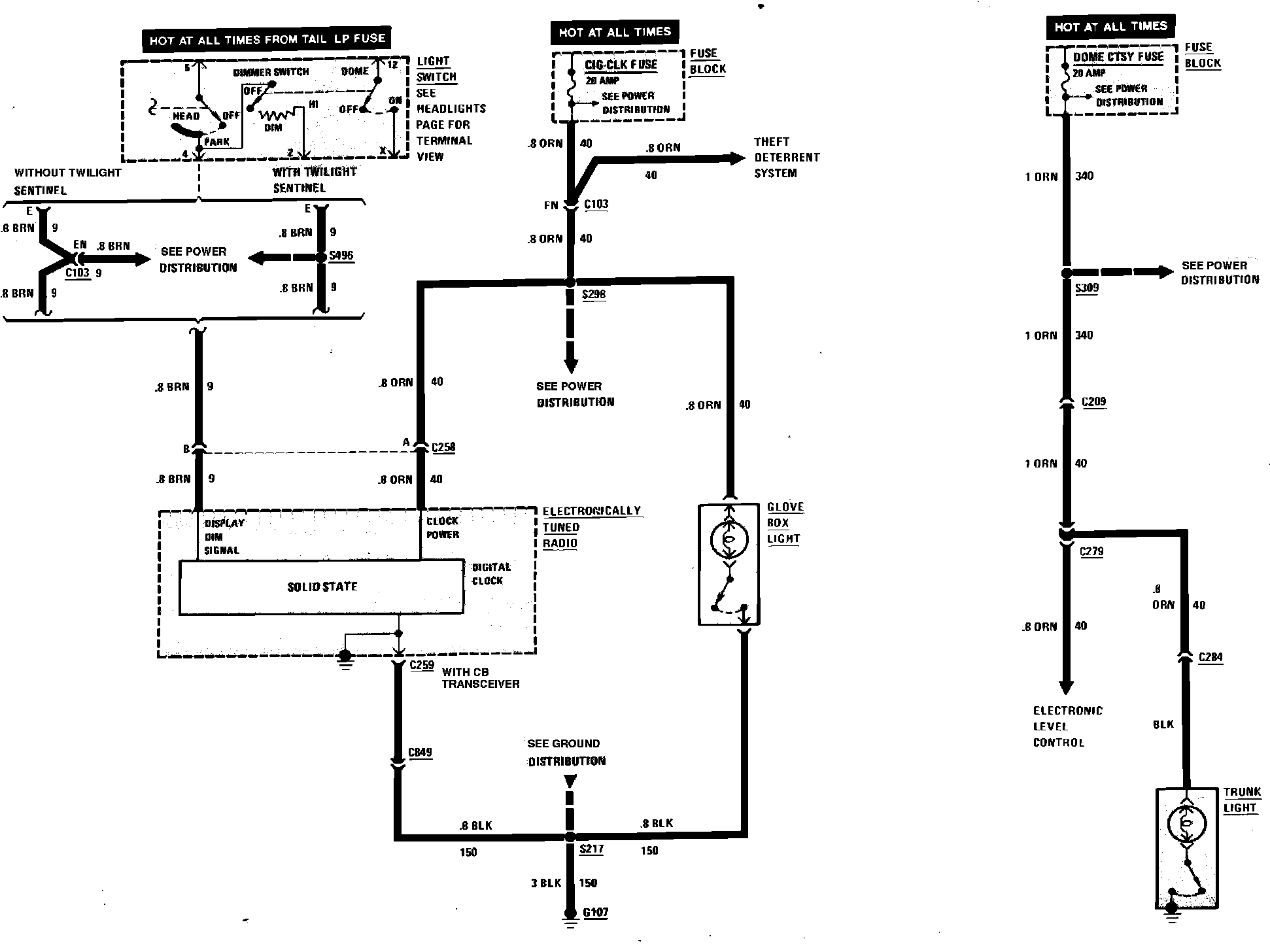 Electronic Clock, Glove Box Lamp & Trunk Lamp Wiring Circuit:
