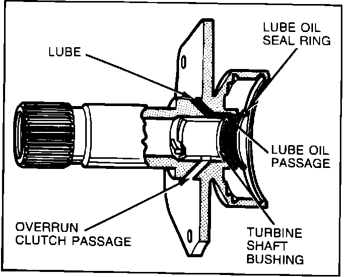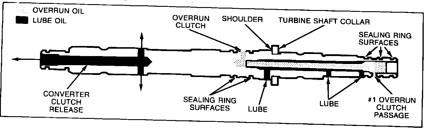 NOTICE: Check for leakage with 30 P.S.I. shop air in the #1 overrun passage. If leakage is detected from lube passages, replace shaft.