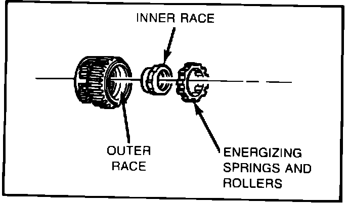 7. Inspect overdrive roller clutch and replace if any of the following conditions are evident (refer to Figure 3):