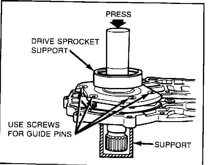 ^ Use the sprocket support bolts as guides by installing the bolts approximately three to four threads deep.