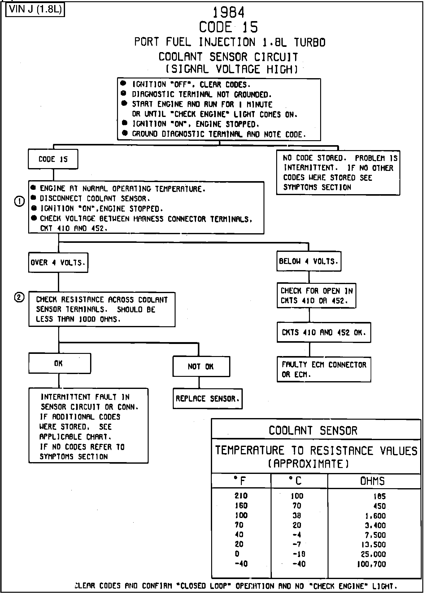 CODE 15, COOLANT SENSOR (SIGNAL VOLTAGE HIGH)