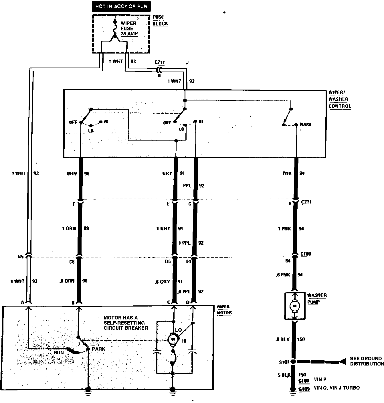 Windshield Wiper/Washer Wiring Circuit (Less Pulse):