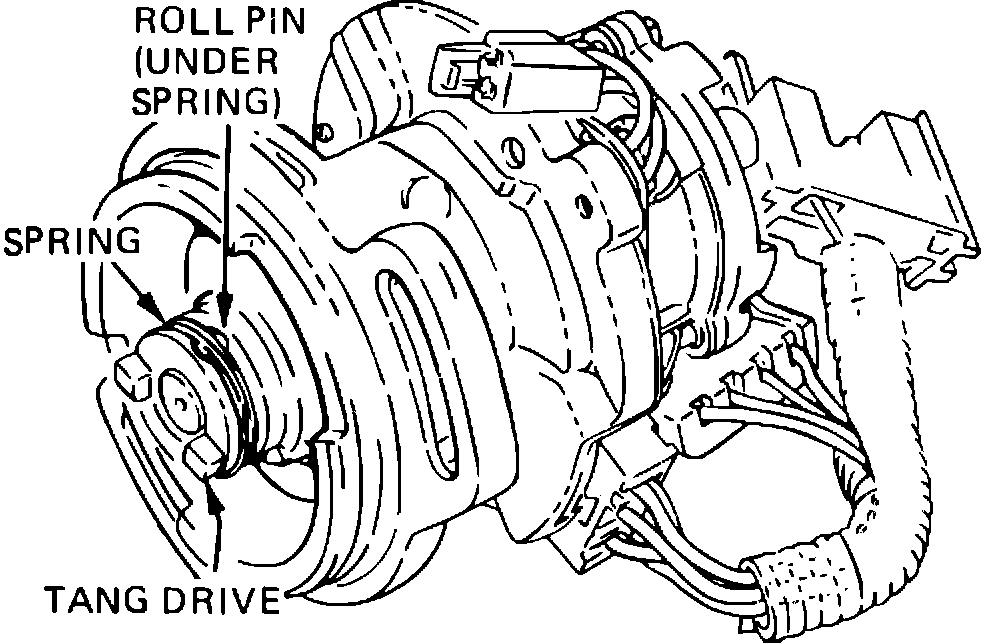 6. Remove spring. Drive roll pin from tang drive and remove shaft assembly. Mark tang drive and shaft for correct reassembly.