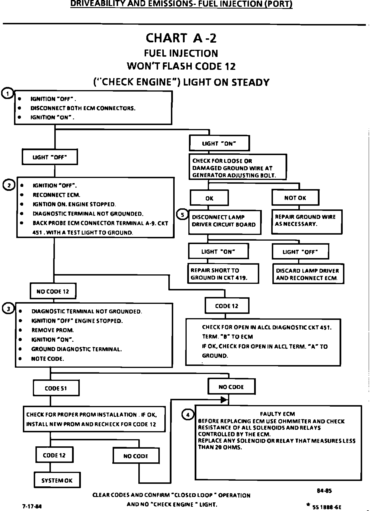 The Revised Diagnostic Chart A-2, Won't Flash Code 12 ("Service Engine Soon" Light On Steady) should be used in place of those currently in Section 6E3 of the 1984 Chassis Service Manual.