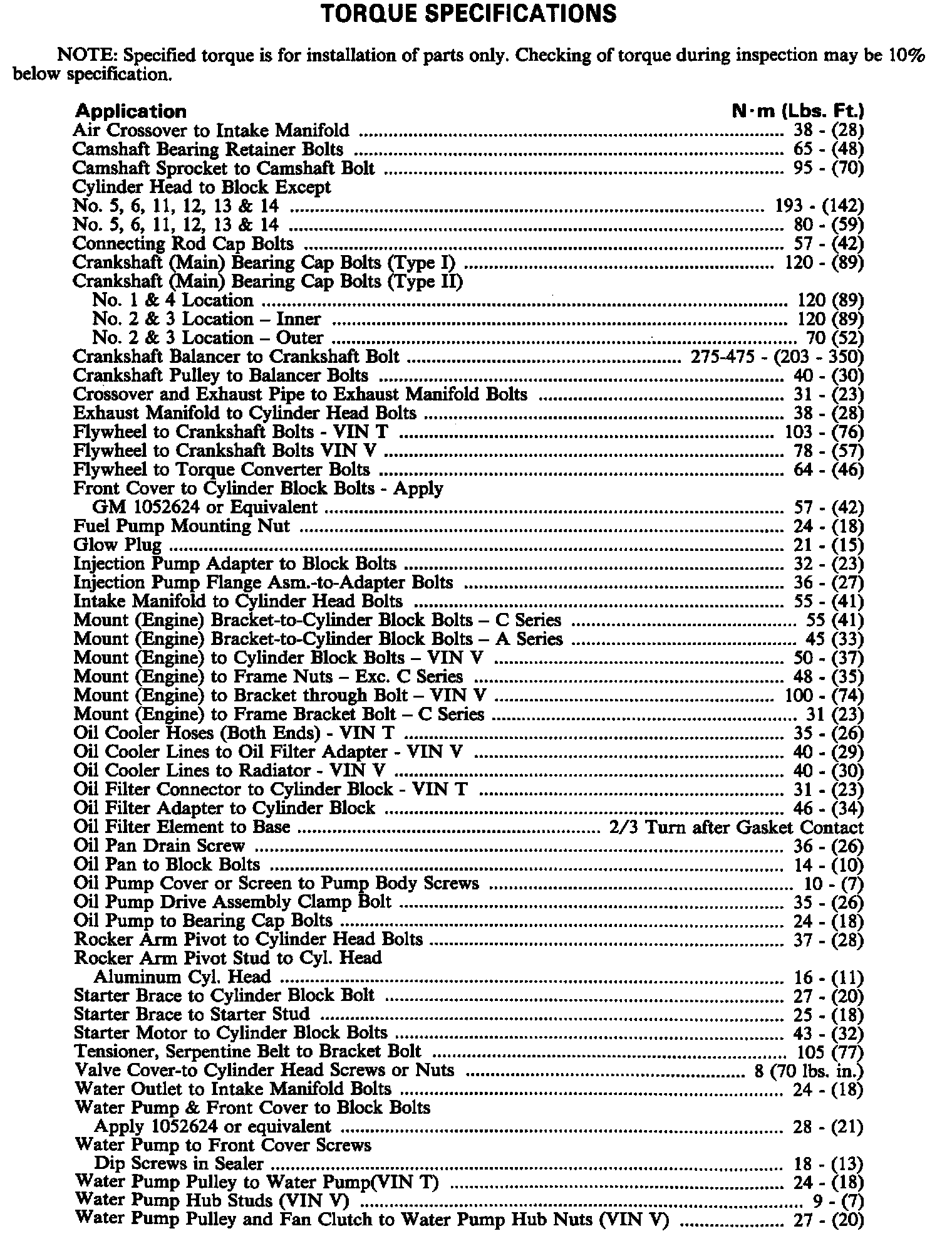 Torque Specifications: