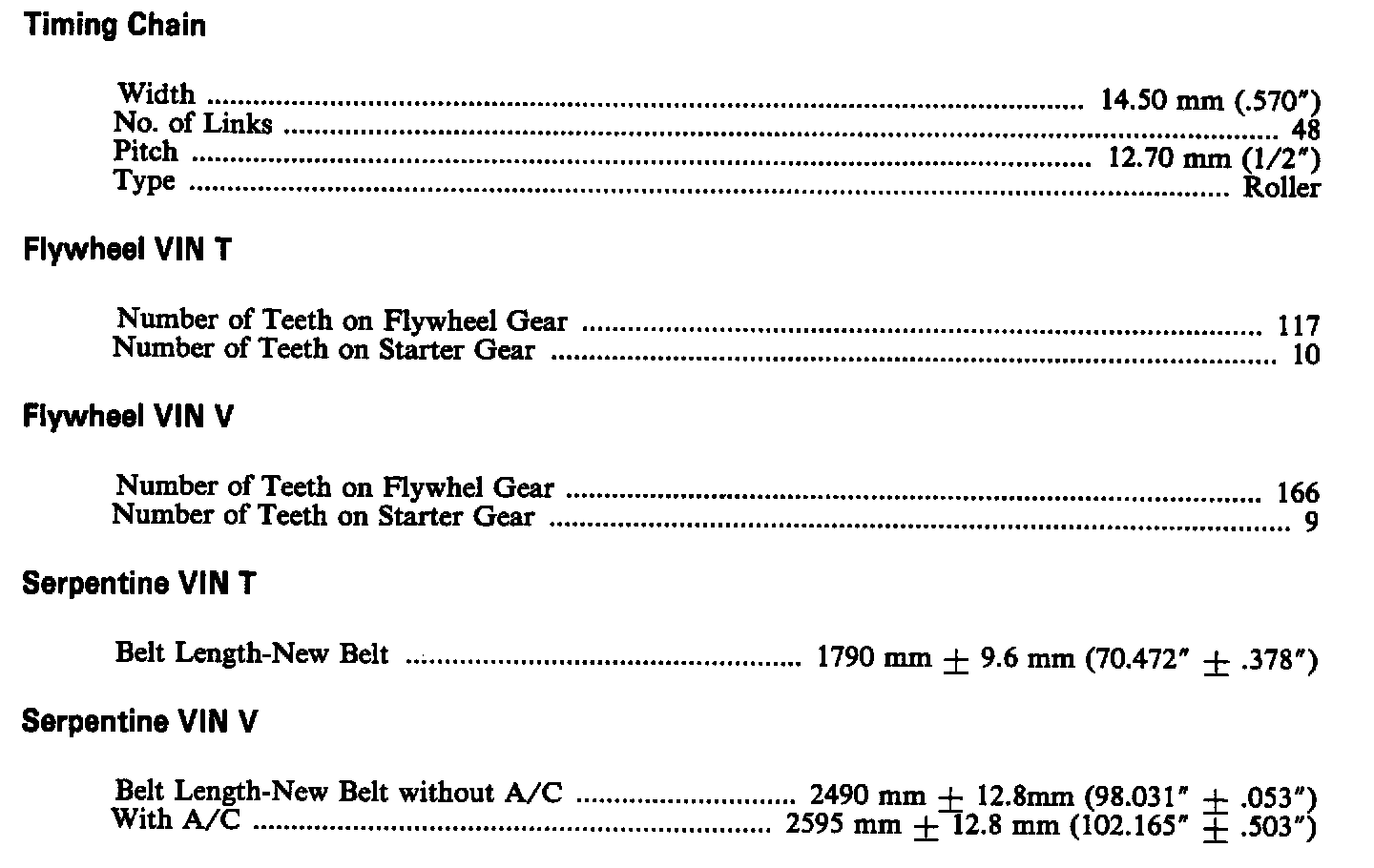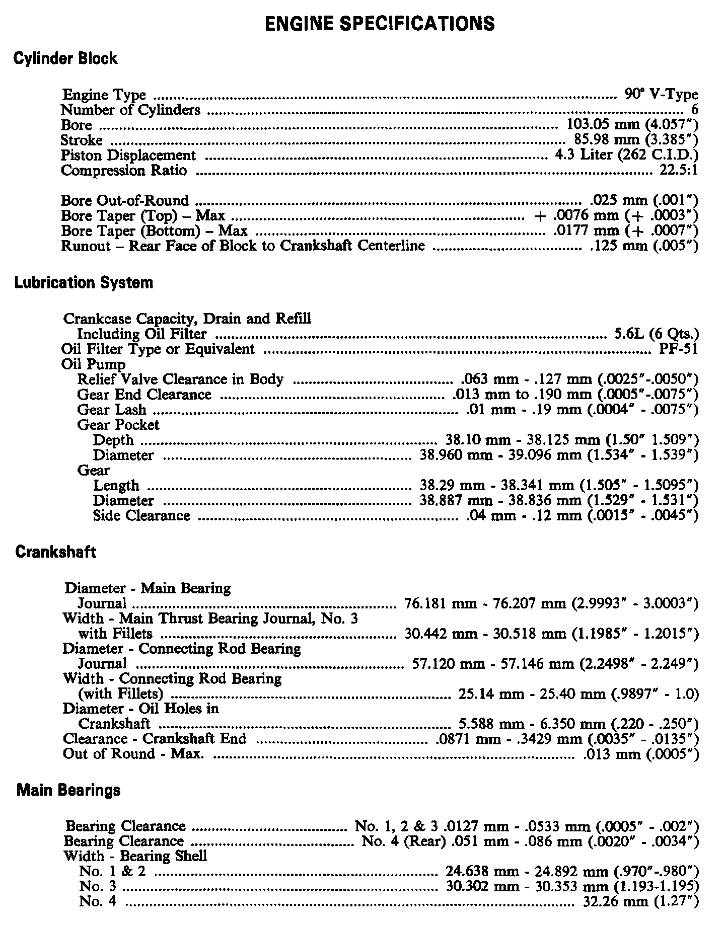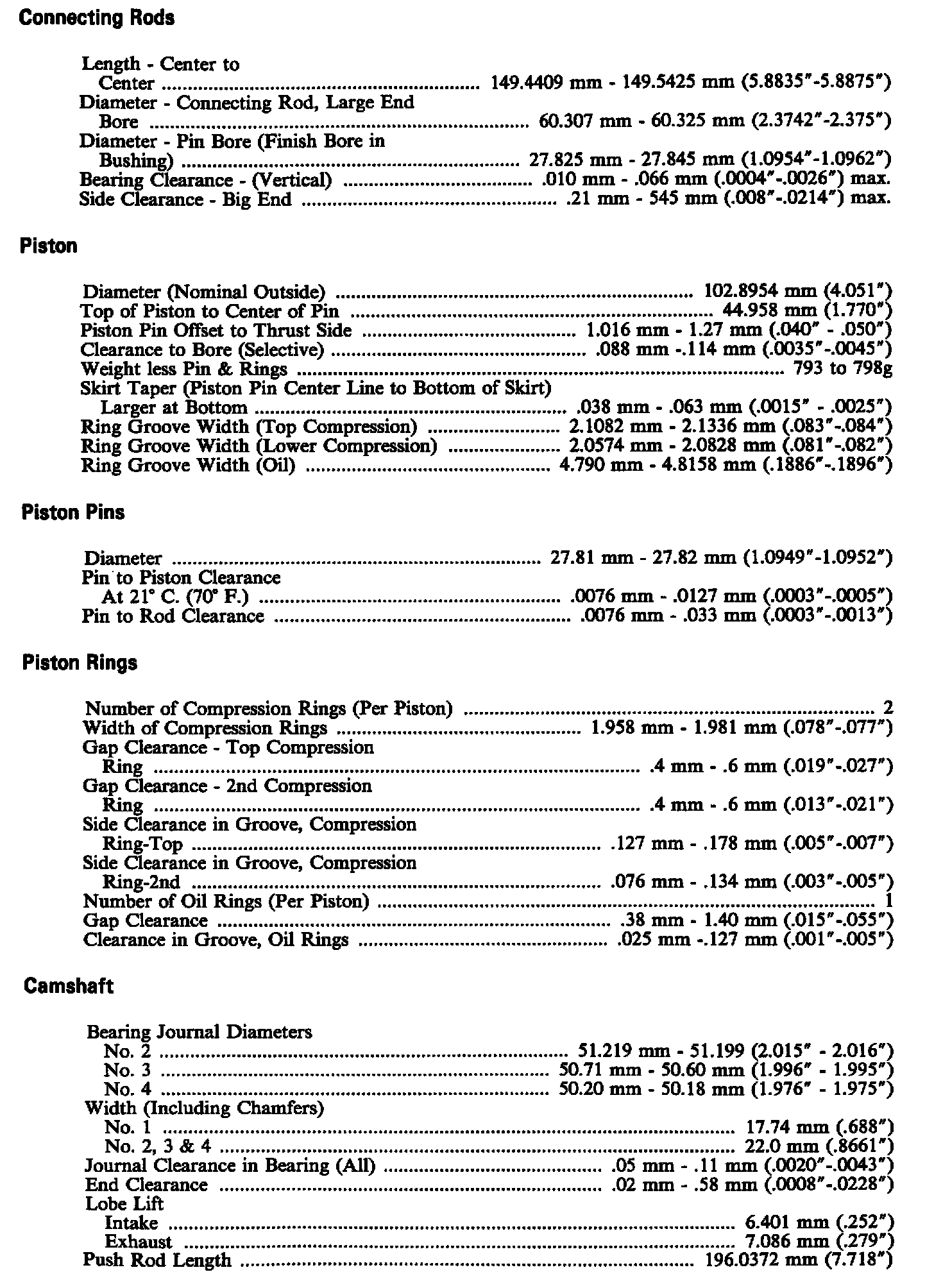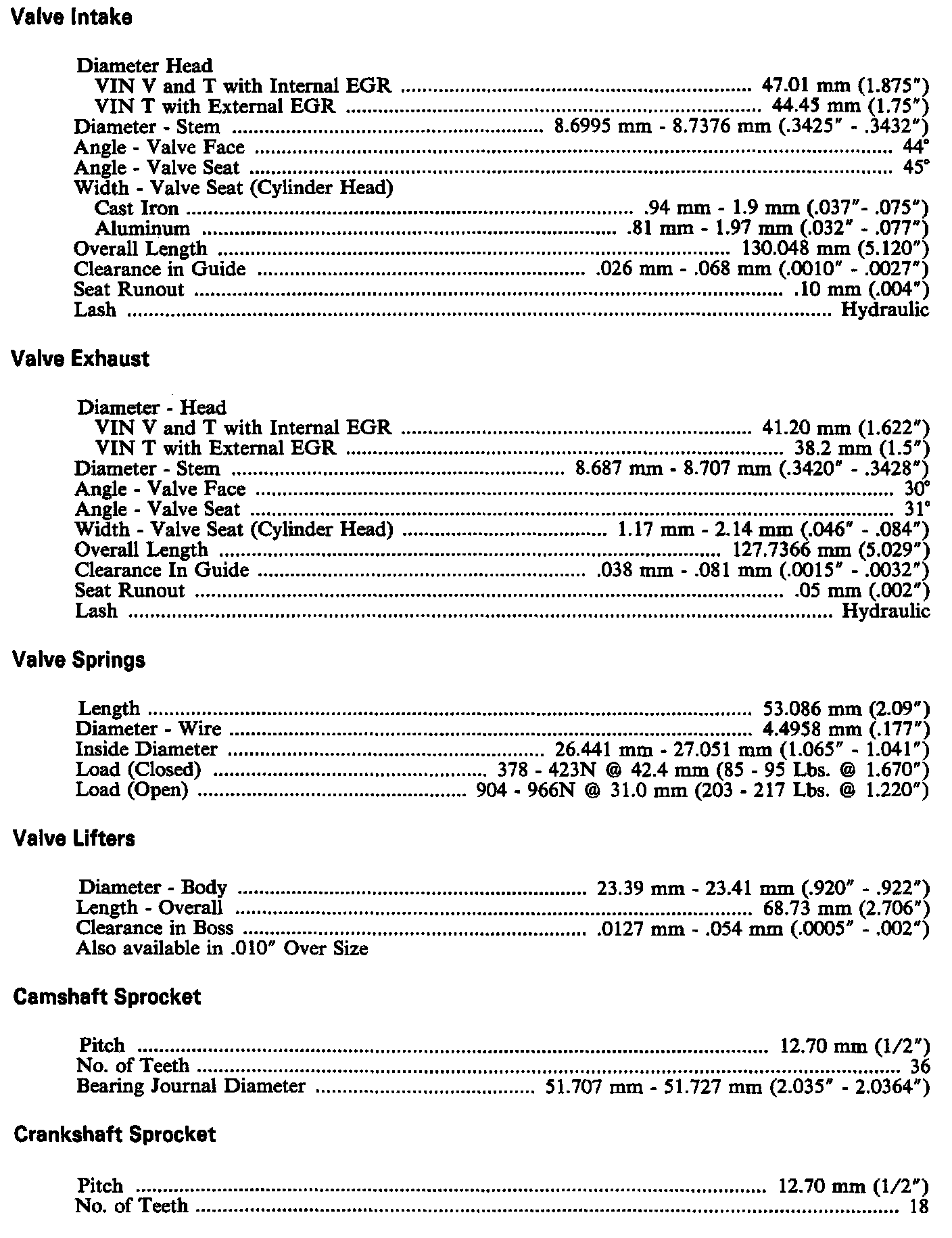 Continued Engine Specifications: