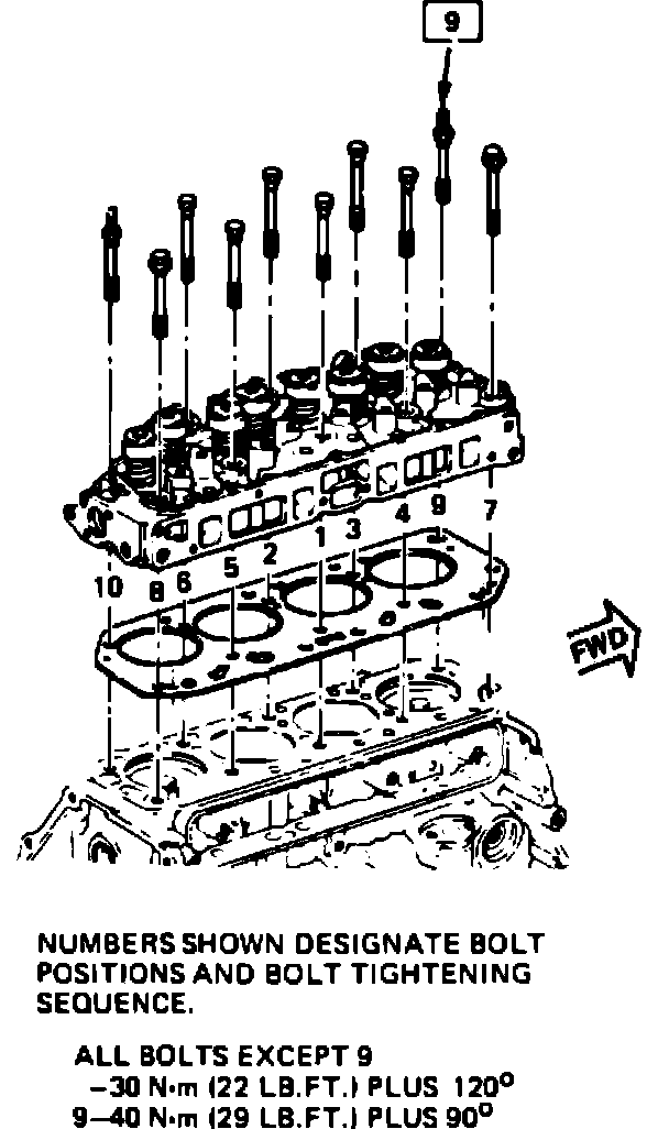 A new bolt tightening procedure has been developed for the 2.5L engine which improves head to block clamping force and assures more uniform tightening.