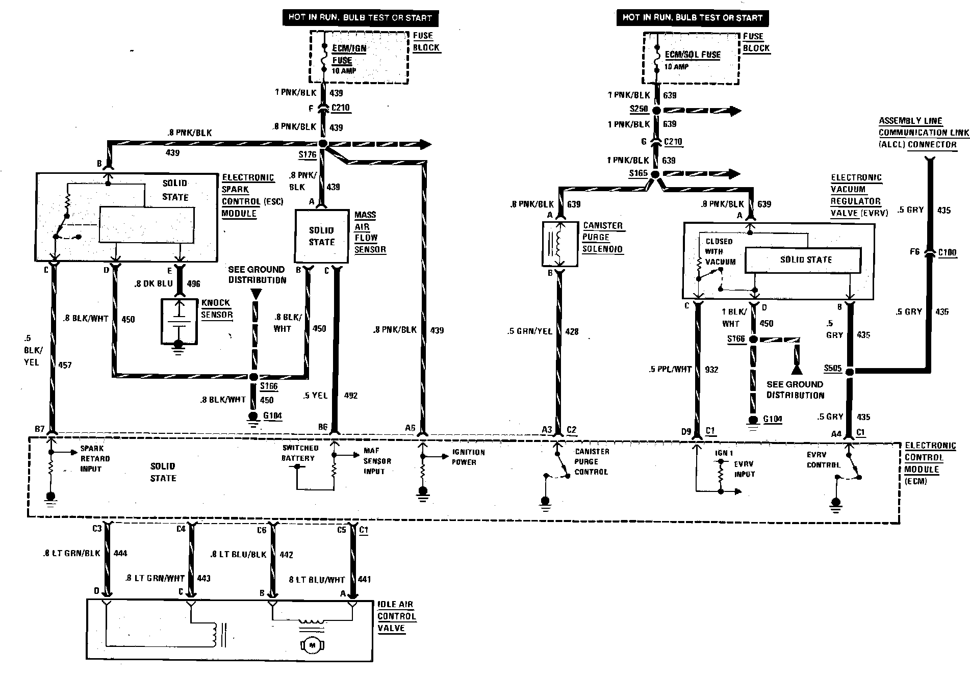 Sequential Fuel Injection Wiring Circuit (Air Flow Sensor, Emission Controls & Spark Control):