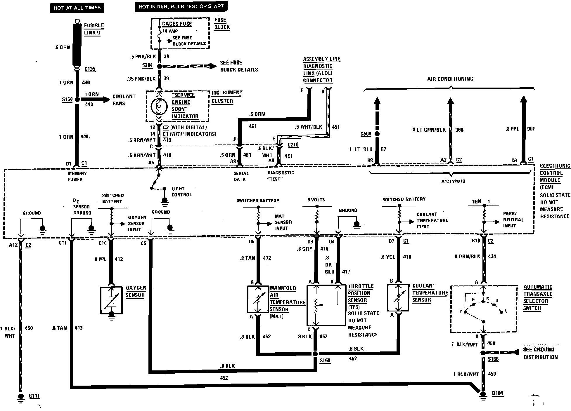 Sequential Fuel Injection Wiring Circuit (Automatic Transaxle Selector Switch, Engine Data Sensors & Service Engine Soon Indicator):