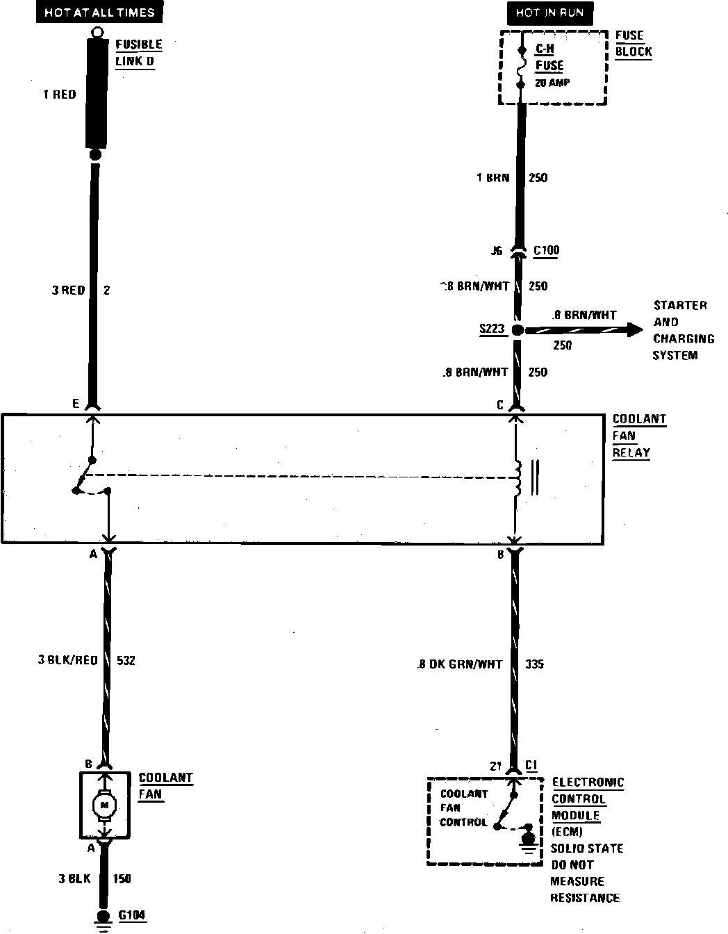 Cooling Fan Wiring Circuit (Engine Less A/C):