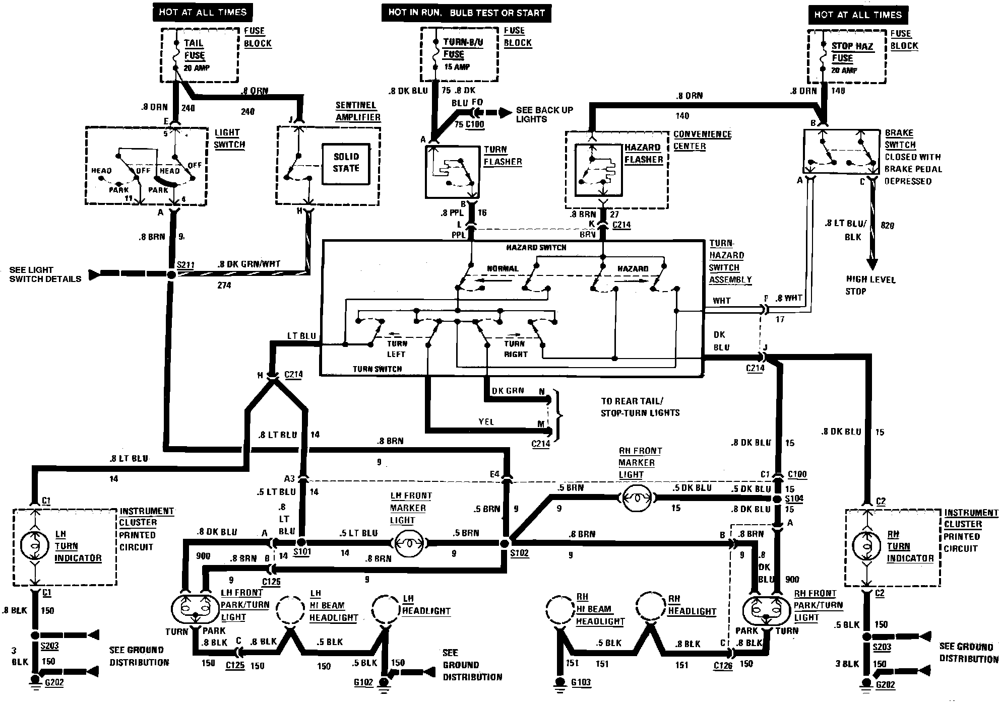 Exterior Lamp Wiring Circuit (Part 2 Of 2, Front Marker, Hazard, Park, Turn & Stop Lamp):