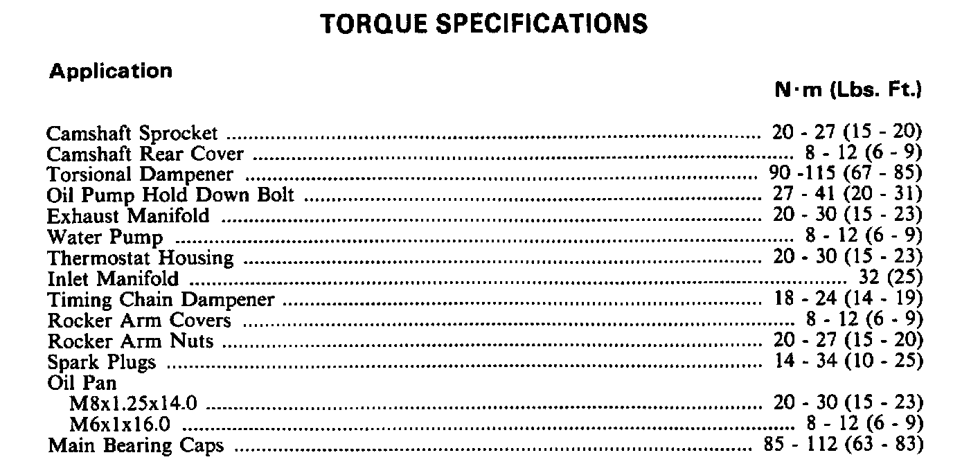 Torque Specifications: