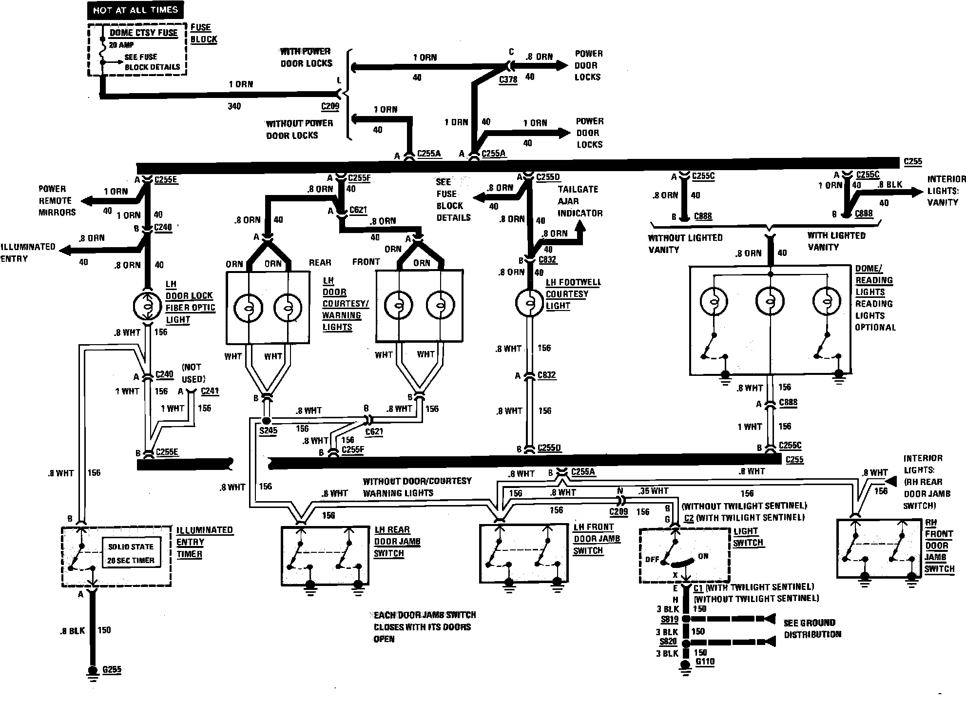 Interior Lamps Wiring Circuit (Courtesy, Dome, Reading & Door Lock Lamps, Left Side):