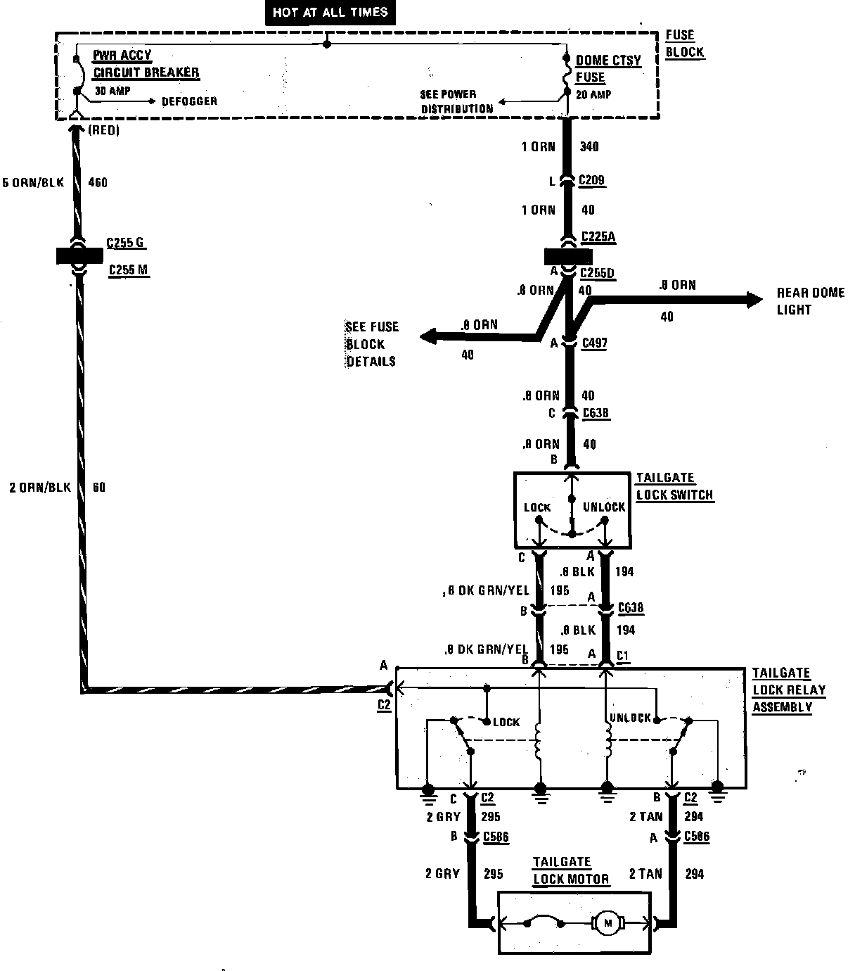 Power Tailgate Lock Wiring Circuit:
