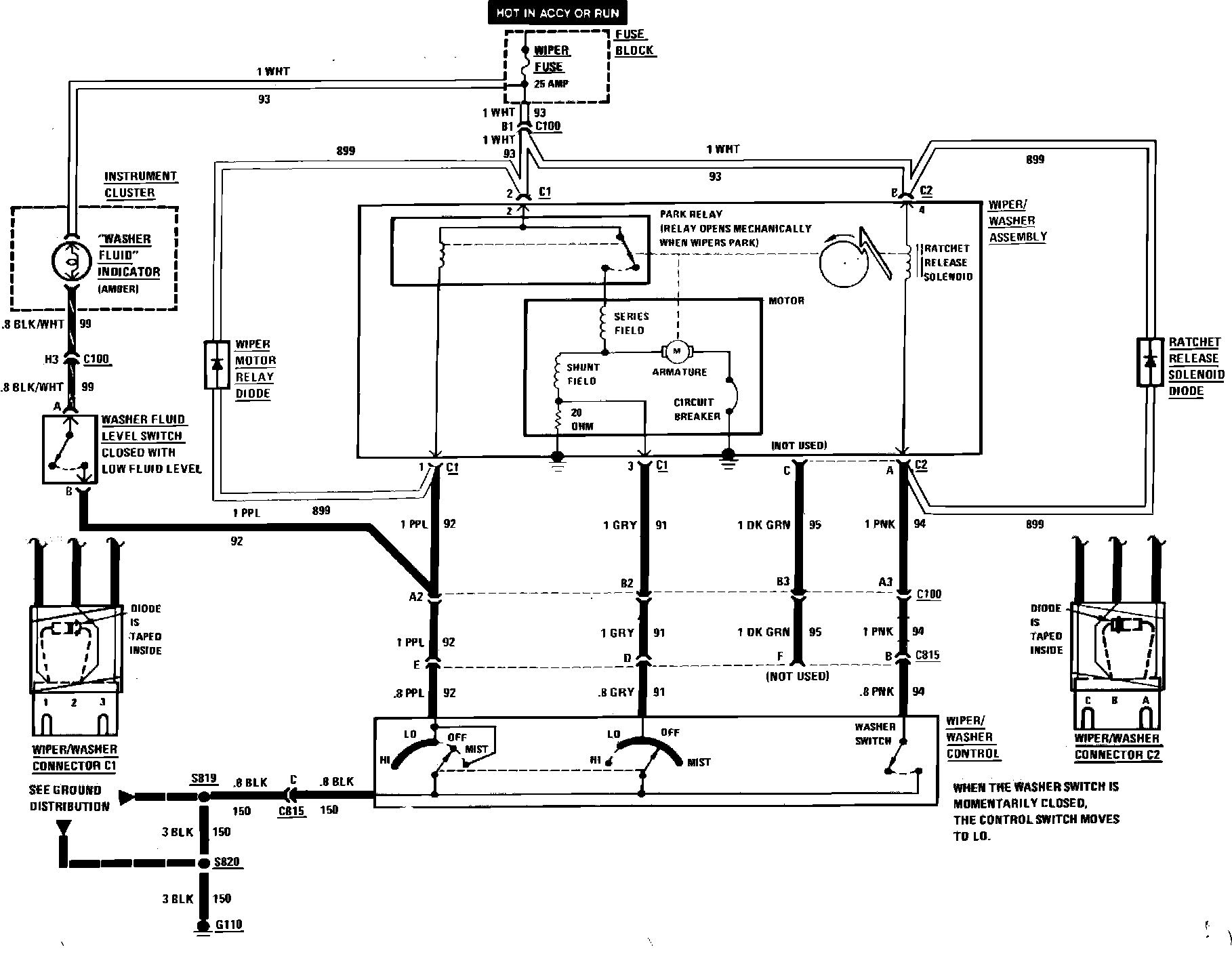 Wiper/Washer Wiring Circuit (Less Pulse):