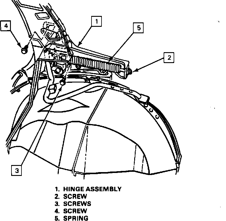 FIGURE 2 - EXTENSION SPRING AND HINGE ASSEMBLY:
