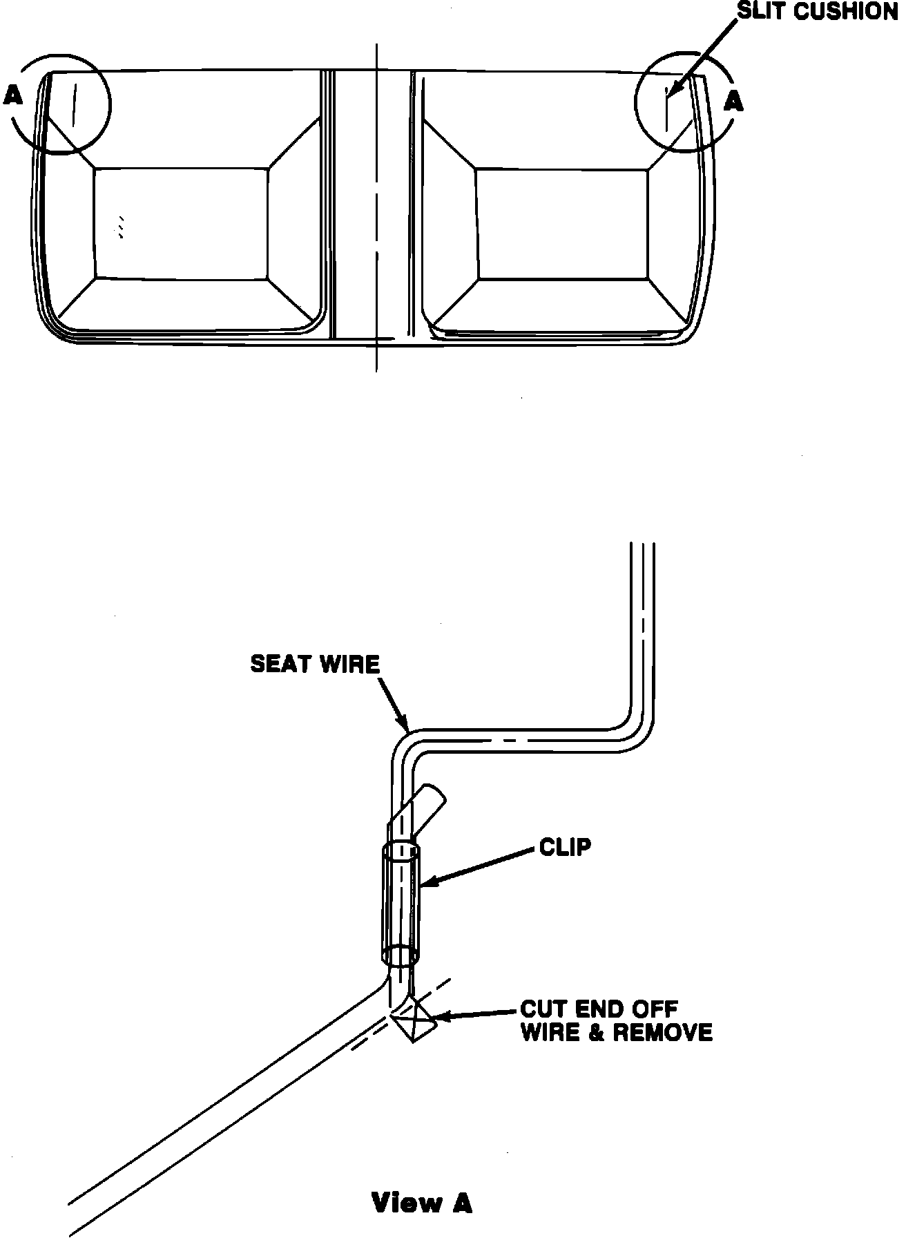 1. Remove seat from vehicle and seat cover from cushion. (See seat Section of the Body Service Manual).