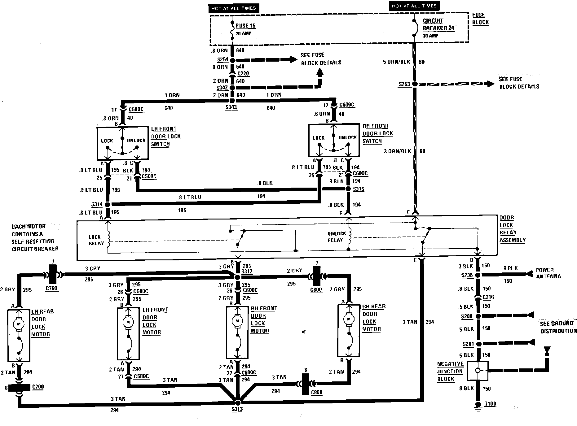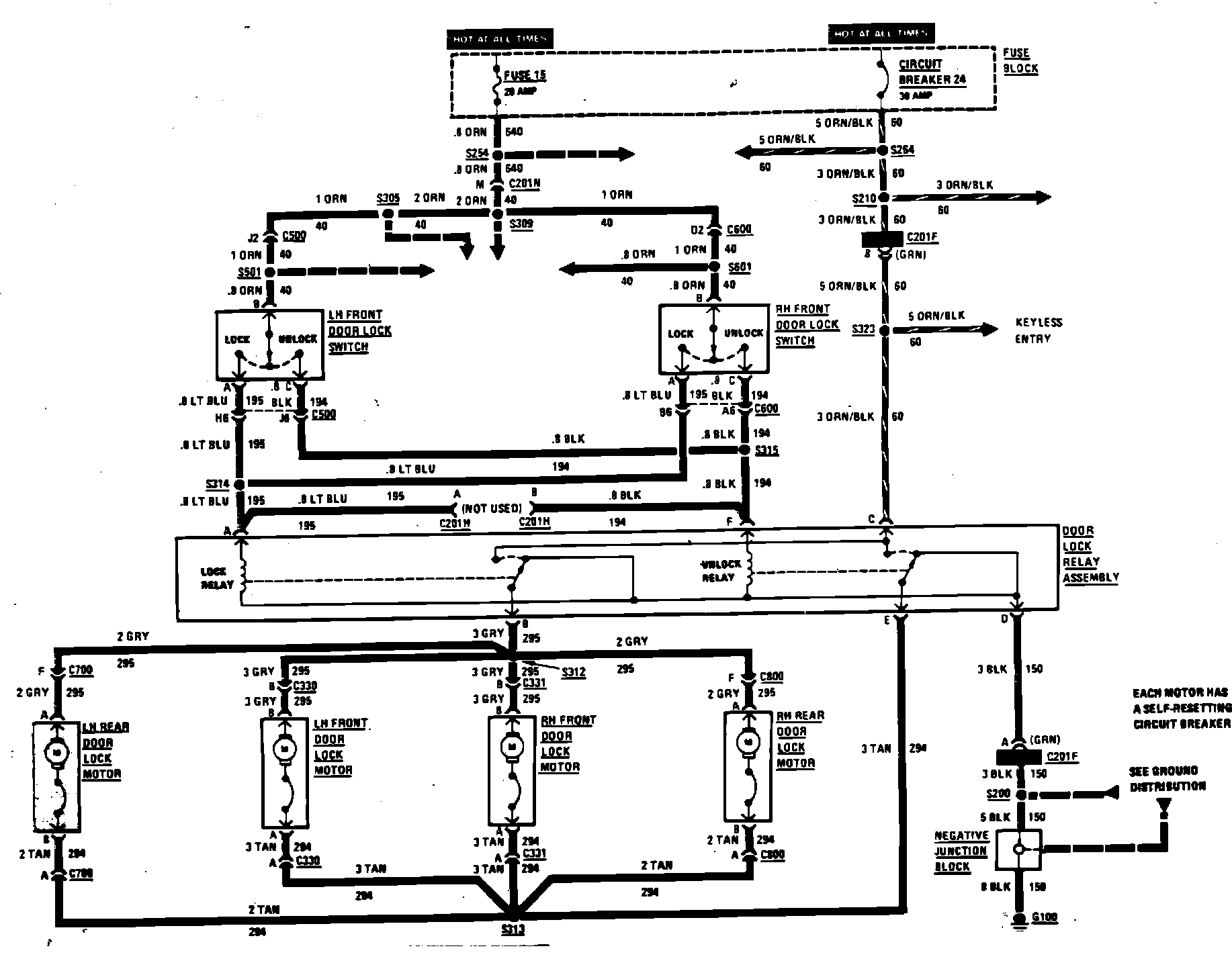 Power Door Locks Wiring Circuit. 4 Door: