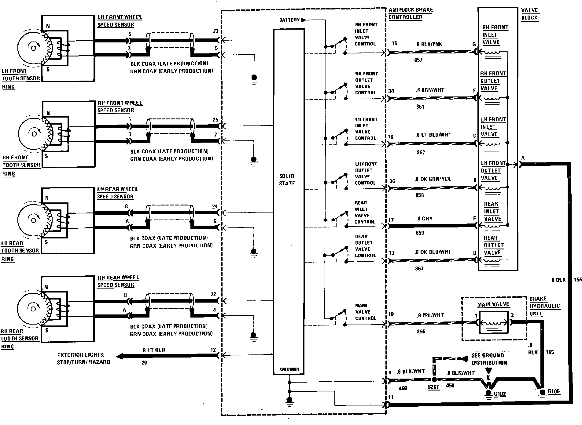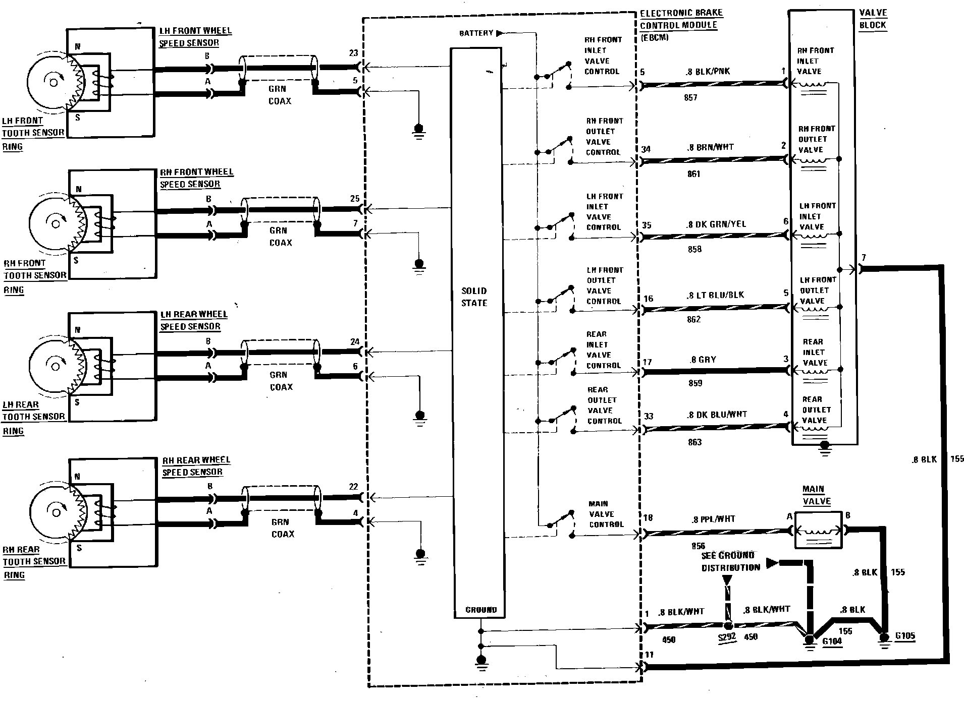 Anti-Lock Brake System Wheel Sensors & Valves Wiring Circuit: